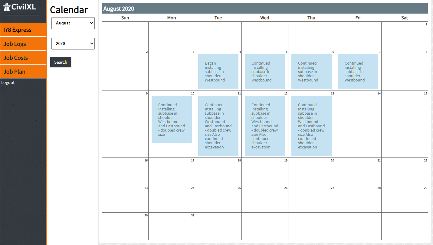 Let CivilXl automatically generate monthly calendars for you, so you can see all the work that's already happened and everything coming up all in one screen.